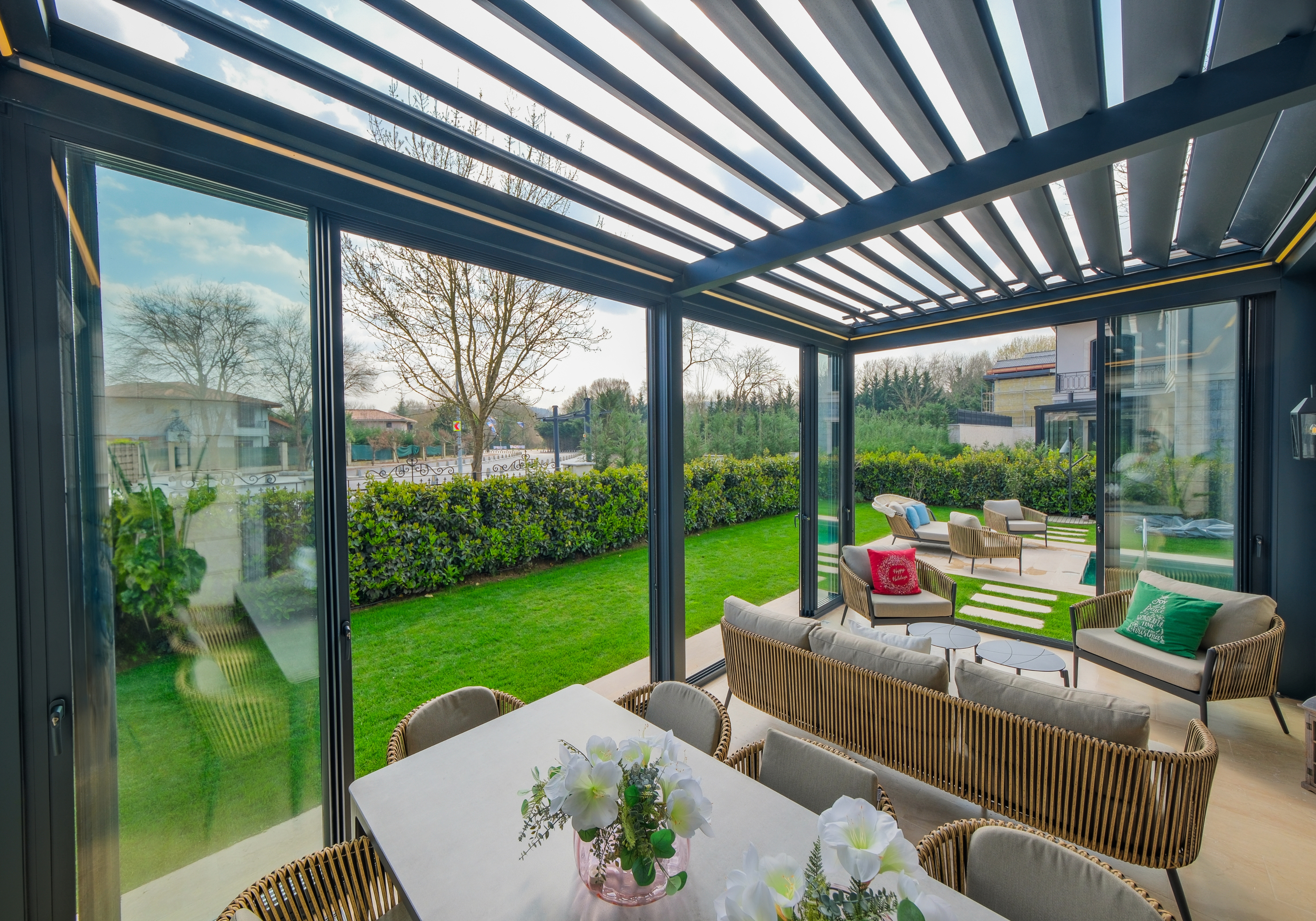 At AnkaSpaces, our aluminum pergolas blend sophisticated style with practical functionality, creating outdoor spaces that are as beautiful as they are useful. Every detail is designed with purpose, ensuring that your pergola enhances both the aesthetics and the versatility of your outdoor living area.
